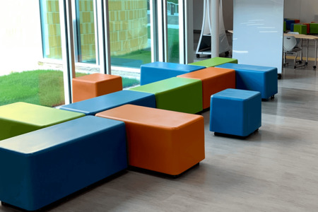 Tenjam is based in Minnesota, U.S.A. They make furniture that is safe, durable, washable and fun. Tenjam furniture can be washed and disinfected multiple times per day if needed. None of the products have stitched seams where bacteria can hide and multiply. Many of Tenjam's designs are modular and multifunctional and can be used as seats, tables, or ottomans.