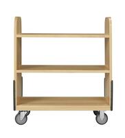 The LOC book truck is made of 1" hardwood panels, has 1/4" reinforcement rods under shelves, has (4) rubber edge bumpers on lower portion of the book truck. The three fixed shelves to hold numerous books. It rolls on 5" casters, and has a 1" applied bottom to reinforce the sides of book truck. This unit ships fully assembled.