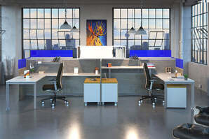 Blade workstations are elegant solutions for the open plan. An aluminum post and beam spine provide the electrical, tackable dividers and worktools with attractive woodgrain or solid laminate dividers connecting to complete the spatial enclosure providing an elegant, expandable, contemporary working space.