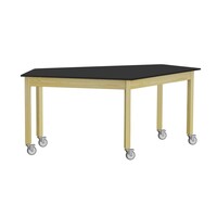 This new table provides flexibility in the classroom by reconfiguring your space! Choose from 2-1/4" wood legs or powder-coated steel legs; 2-1/2" x 2-1/2" thick wall square steel tub legs with installed 5/16" hanger bolts and installation hardware. The apron is constructed of solid oak or maple finished with a chemical-resistant, non-emitting UV finish.