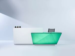 Structural, left or right oriented, and beautiful. This product mounts to existing millwork, and is constructed with light loving Chroma. Proprietary lighting included. Choose from 250 colors.