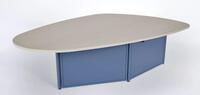The Guitar Pick Table embodies a unique design language, showcasing Formaspace’s expertise in crafting large-scale custom tables. This table transcends mere functionality, transforming into a statement piece through the integration of custom elements like the striking laser-cut logo.