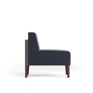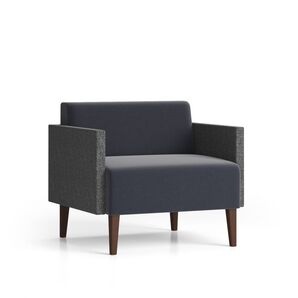 The Luxe collection of lounge seating and tables offers contemporary tuxedo style design with heavy-duty construction for high traffic environments. Legs are available in steel or wood options and chairs have an optional power unit.