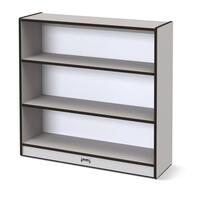 The ultimate in book storage with shelves that adjust in 1.25" increments. Choose from 36", 48" or 60" heights. Back options are not available. Wall fastener included. Constructed of double-sided freckled gray laminate with colored TRUEdge.