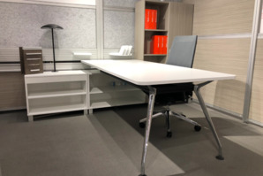 An elegantly designed modular table system for private office, benching, boardroom and meeting spaces, Sophi features die cast aluminum legs in a beautiful chrome finish connected to a modular aluminum frame.